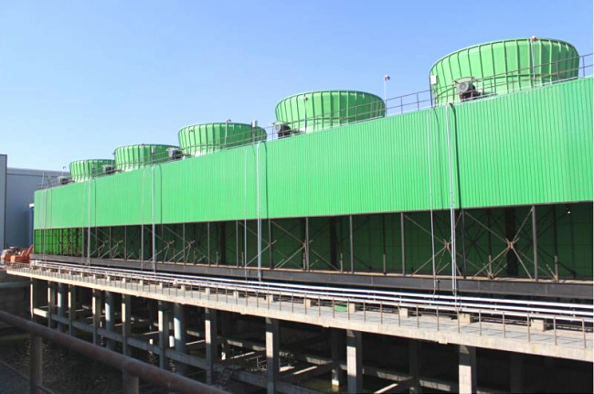 冷却塔是用水作为循环冷却剂,从一系统中吸收热量排放至大气中,以降低水温的装置;其冷是利用水与空气流动接触后进行冷热交换产生蒸汽,蒸汽挥发带走热量达到蒸发散热、对流传热和辐射传热等原理来散去工业上或制冷空调中产生的余热来降低水温的蒸发散热装置,以保证系统的正常运行,装置一般为桶状,故名为冷却塔。