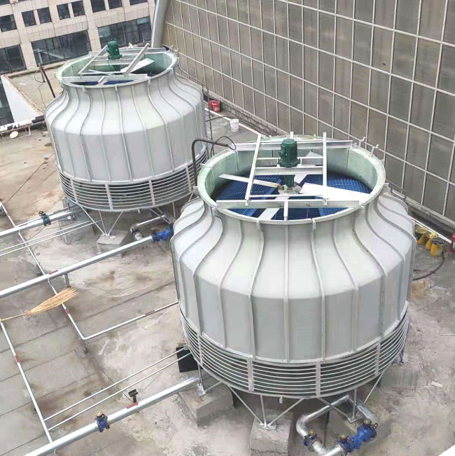 圆形冷却塔采用逆流式气热交换技术。主体采用全钢结构,玻璃钢板护围,塔体设检修扶梯供塔顶设备的正常维护管理。填料采用优质的改性PVC斜梯波片,以扩散淋水面积;通过旋转布水或管式布水方式,实现布水均匀,增强冷却效果。其形状为“圆形”,故名为圆形冷却塔。