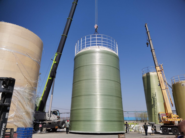 立式玻璃钢罐一般为圆柱形,直接置于基础上,底部为平底,顶部为锥形或平顶。