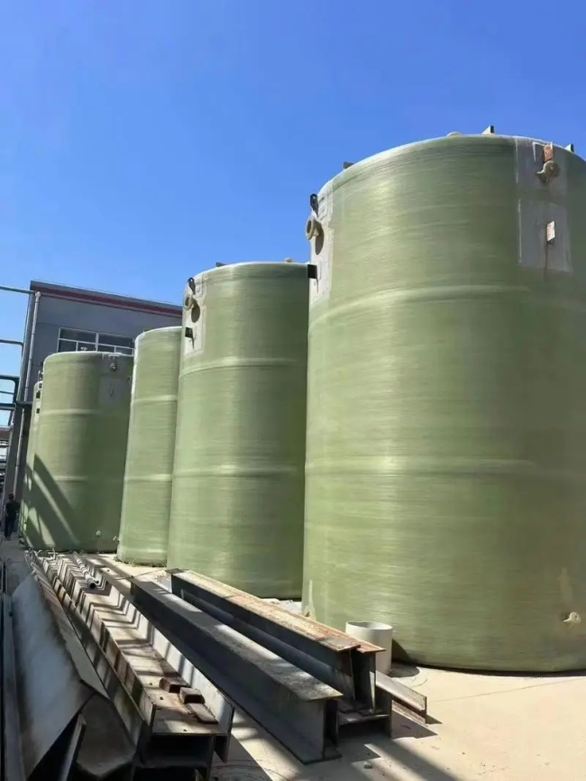 立式玻璃钢罐一般为圆柱形,直接置于基础上,底部为平底,顶部为锥形或平顶。