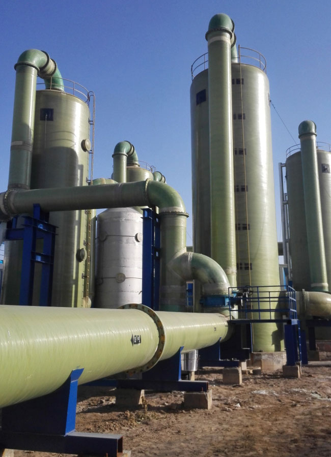 优点是易维护,且可通过配制不同的除尘剂,同时达到除尘和脱硫(脱氮)的效果。随着玻璃钢技术的发展,脱硫塔逐渐改为用玻璃钢制造。相比花岗岩脱硫塔,玻璃钢脱硫塔成本低、加工容易、不锈不烂、重量轻,因此成为今后脱硫塔的发展趋势。另外316L不锈钢具有耐腐蚀、耐高温、耐磨损三大优势,也是脱硫塔发展重要趋势之一。经过多年的改进,已发展成文丘里型、旋流板型、旋流柱型、浮球型、筛板型、气动乳化型等各种类型的脱硫塔,设备技术日趋成熟,各有优点和不足,企业可依自身需要选用不同类型。